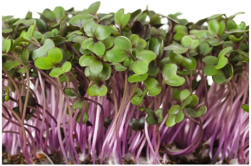 “Vibrant and crisp with a gentle sweetness — red cabbage microgreens are loaded with vitamins A, C, and K, offering antioxidant power in every colorful bite.”